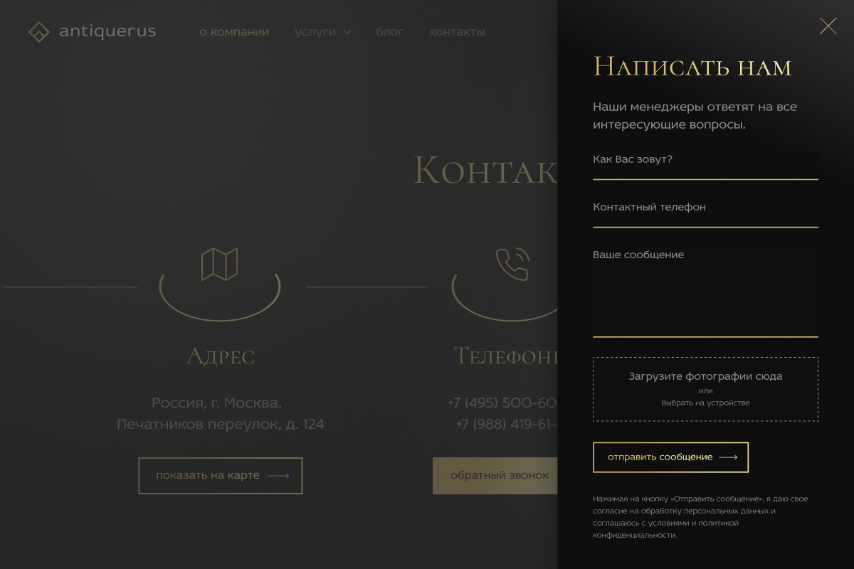 Загрузите фото ваших швейцарских часов, бриллиантов или антикварной вазы в мобильной версии сервиса Antiquerus. Наша «древовидная» навигация и адаптированные формы позволяют получить предварительную оценку стоимости за 60 секунд. Строгий дизайн с золотыми акцентами гарантирует, что даже в смартфоне вы ощущаете уровень премиального сервиса в Москве.