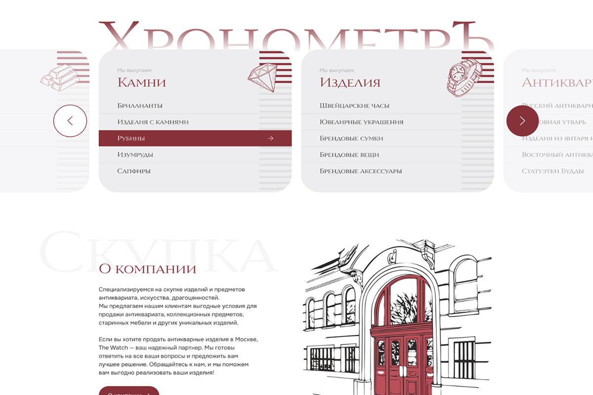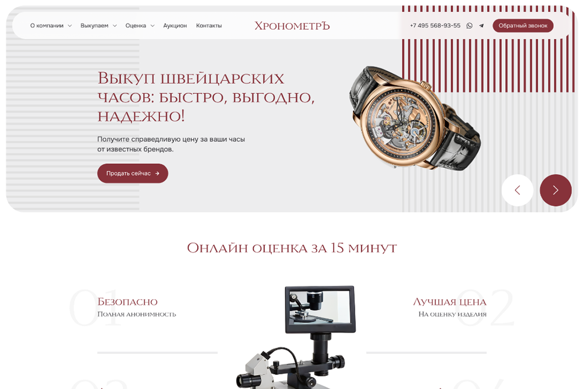 Для компании «ХронометрЪ» мы разработали digital-платформу, которая является виртуальным продолжением их офиса в Москве. Через строгий дизайн, продуманный UX и контент в экспертном тоне мы сформировали образ надежного партнера для выкупа предметов роскоши. Каждый элемент сайта — от структуры до анимаций — работает на повышение конверсии, внушая доверие и подчеркивая статус клиента. Проект демонстрирует, как цифровые технологии усиливают бизнес, основанный на абсолютном профессионализме и личном контакте.