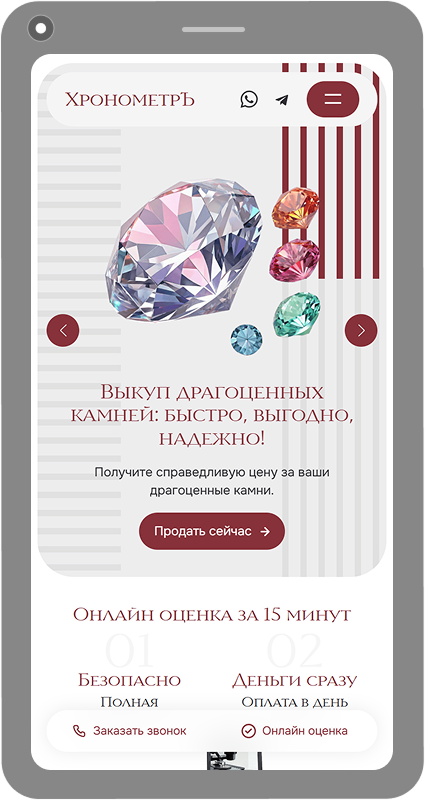 Клиенты «ХронометрЪ» часто оценивают возможность быстрой сделки с мобильного. Мы создали адаптивную версию сайта, которая сохраняет всю функциональность и серьёзный стиль. Удобная навигация, мгновенная загрузка и оптимизированные формы заявок позволяют отправить фото предмета и получить предварительную оценку за несколько минут прямо со смартфона. Профессионализм — теперь в вашем кармане.
